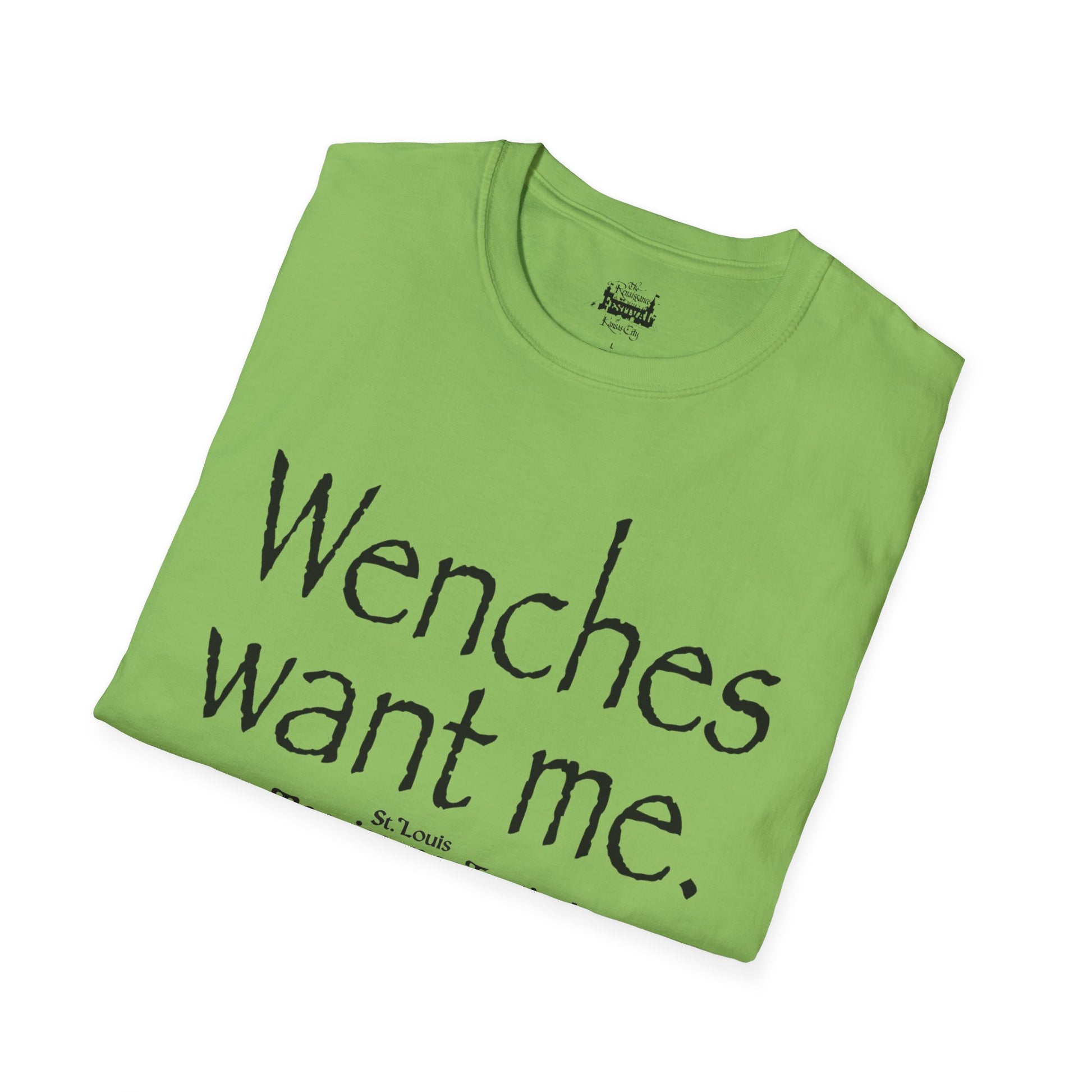Step into the Renaissance fair with swagger in this playful white cotton t-shirt! Featuring bold, medieval-inspired lettering that declares "Wenches Want Me," this cheeky design is perfect for knights, jesters, and lords who want to bring some humor to the Renaissance festival scene.